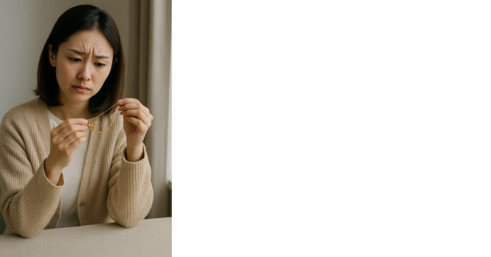 「なんで?何もしてないのに、ネックレスがこんなことに…」そう呟いて持ってこられたお客さまのチェーン。保存方法がちょっと変わるだけで、日常の“気づき”に変わることがあります。