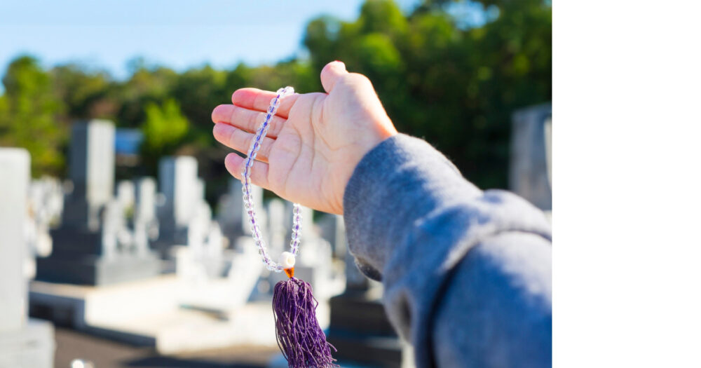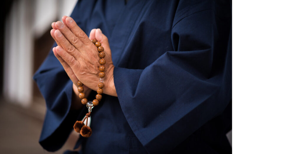 数珠念珠を手にかけ